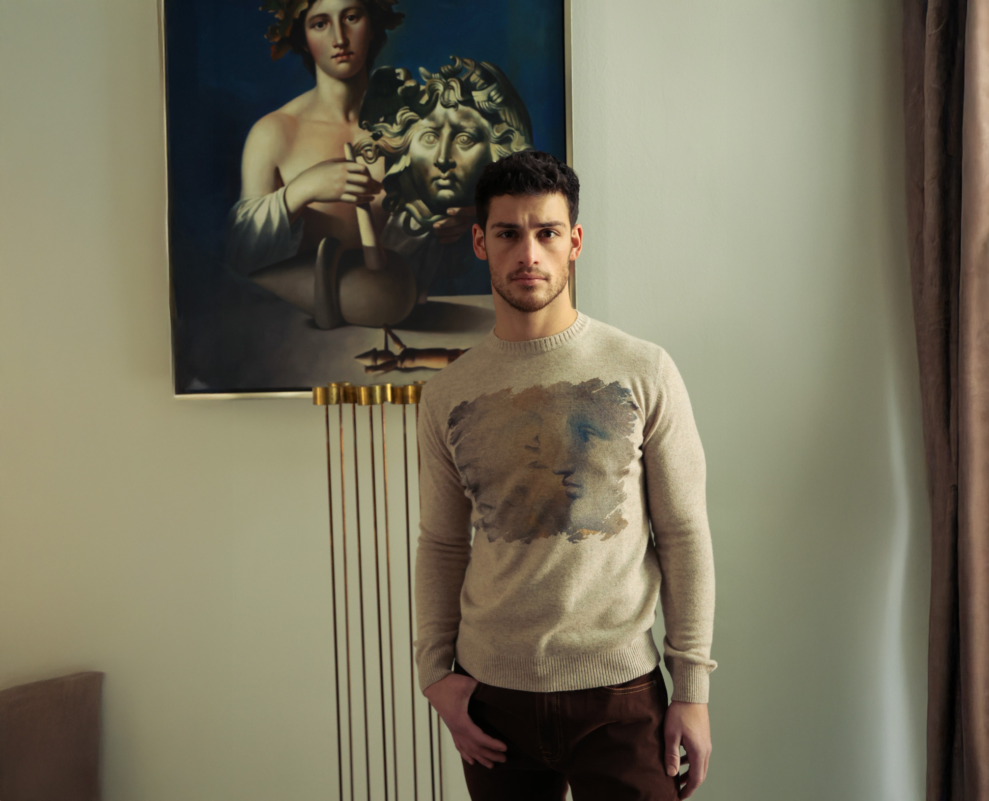 This collaboration is a testament to a 20-year friendship between Kaye and the late Mariani. Known as “the maestro” in Italy, Mariani was a prominent figure in the Postmodernist movement of the 1980s. We are honored to incorporate his artwork into our menswear collection.