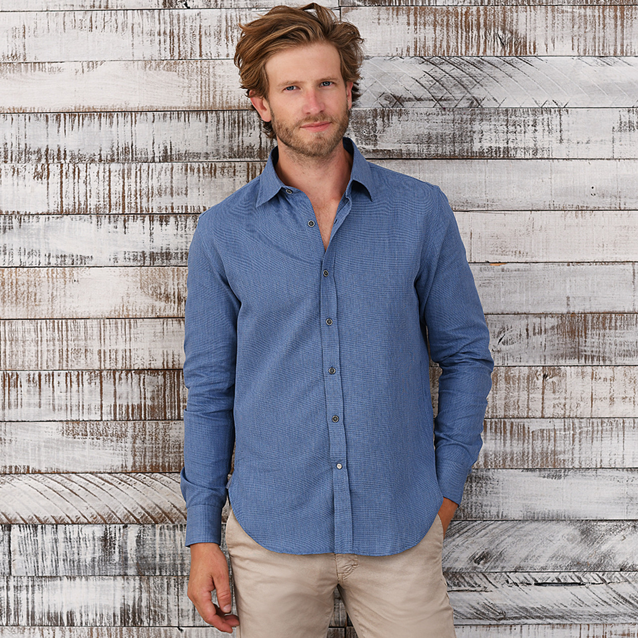 Inspired by the classic blue shirt, we worked closely with fabric mills, creating an oxford alternative. This shirt is finely textured using a honeycomb weave. The subtle chambray details add character. Wear it casually with a sport coat or be weekend ready with a sweater and chinos.