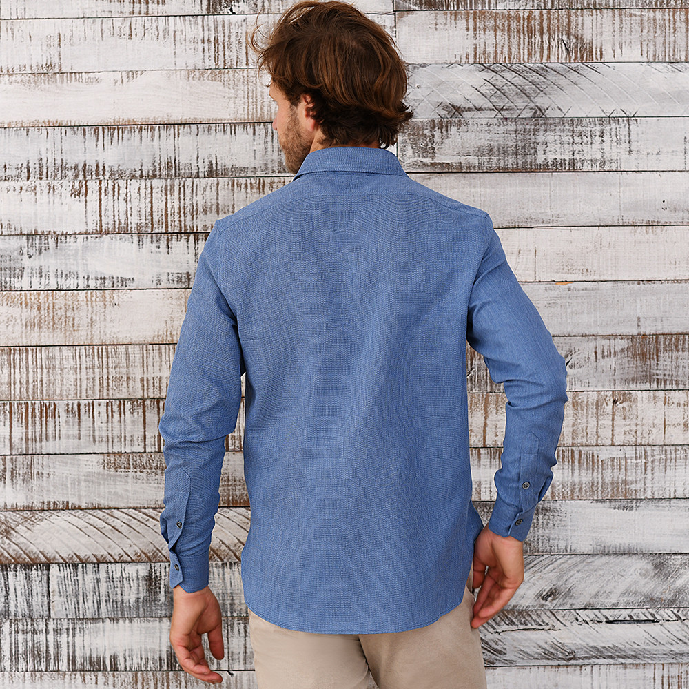 Inspired by the classic blue shirt, we worked closely with fabric mills, creating an oxford alternative. This shirt is finely textured using a honeycomb weave. The subtle chambray details add character. Wear it casually with a sport coat or be weekend ready with a sweater and chinos.